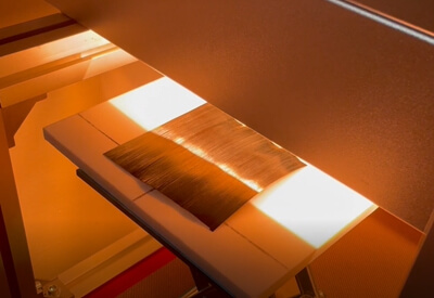 固化PP料無塵裁切可利用聚焦加熱器對半固化PP材料進行加熱,結合圓刀切割技術實現無塵裁切。其主要原理是將紅外加熱技術與傳統(tǒng)的裁切方法相結合,利用紅外聚焦高溫加熱,穿透力強,加熱速度快,對切割處的半固化片先加熱再裁切,從而減少切割過程中產生的粉塵,解決一直以來困擾業(yè)界的裁切半固化片粉塵及毛邊問題,提高生產效率的同時保證了操作人員的健康。